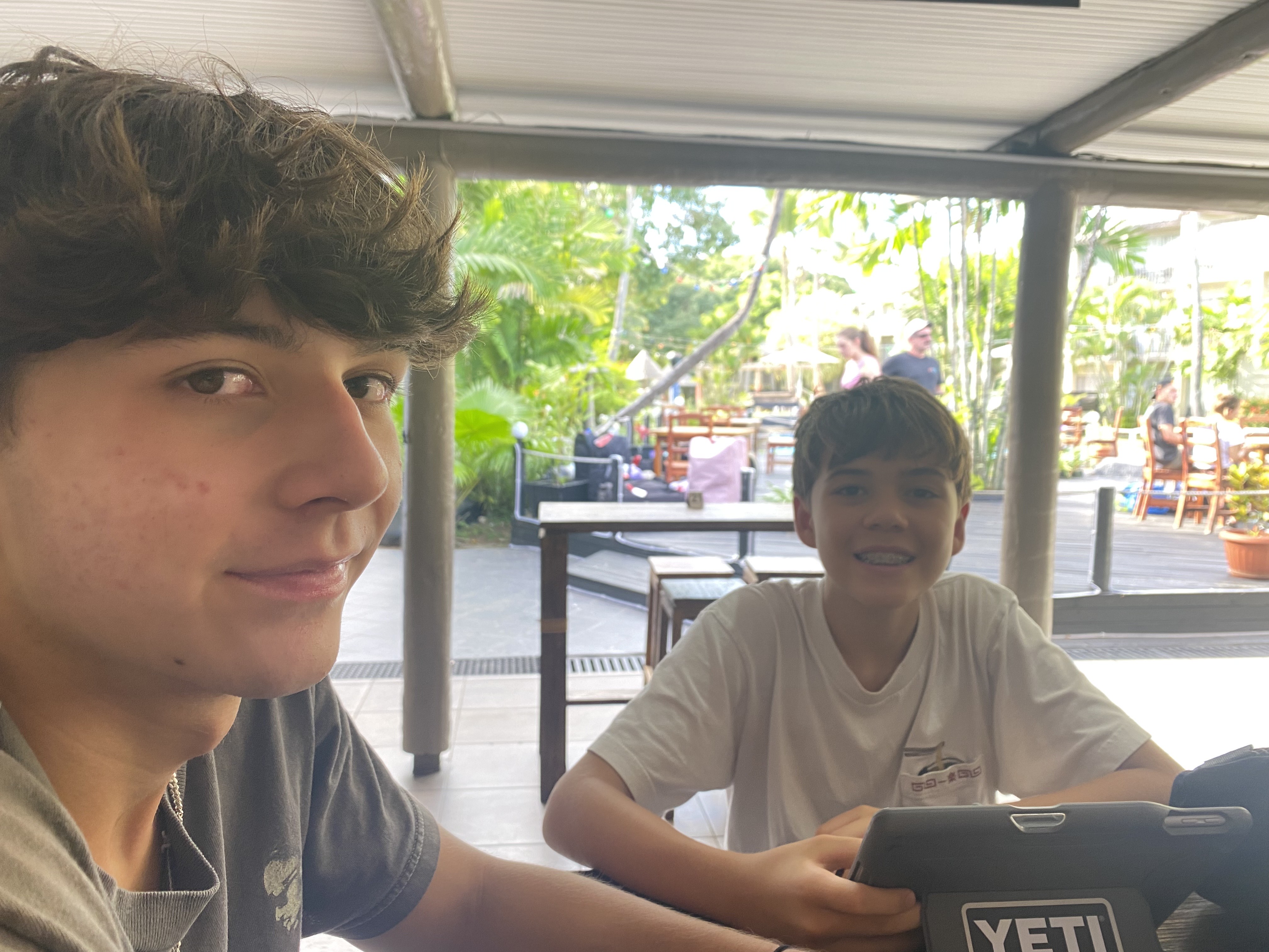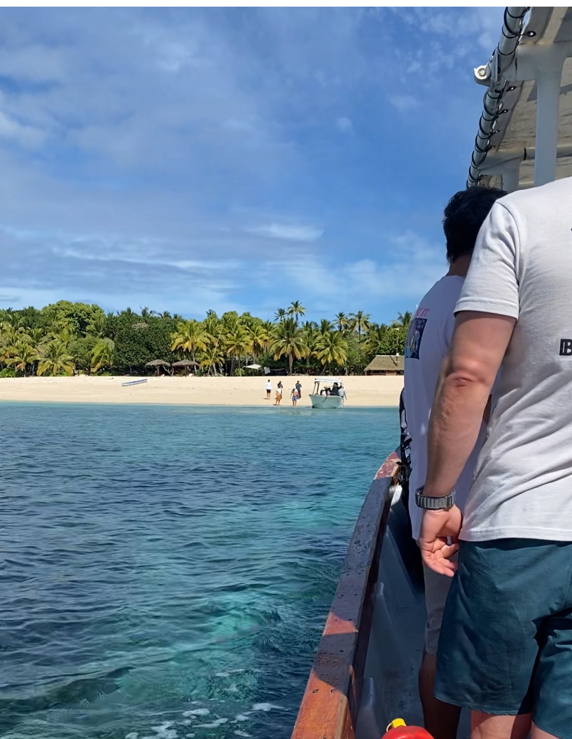 Our White Lotus moment (Pulling up to the island, greeted by the Fijians) Elizabeth M. Kiefer emkiefer