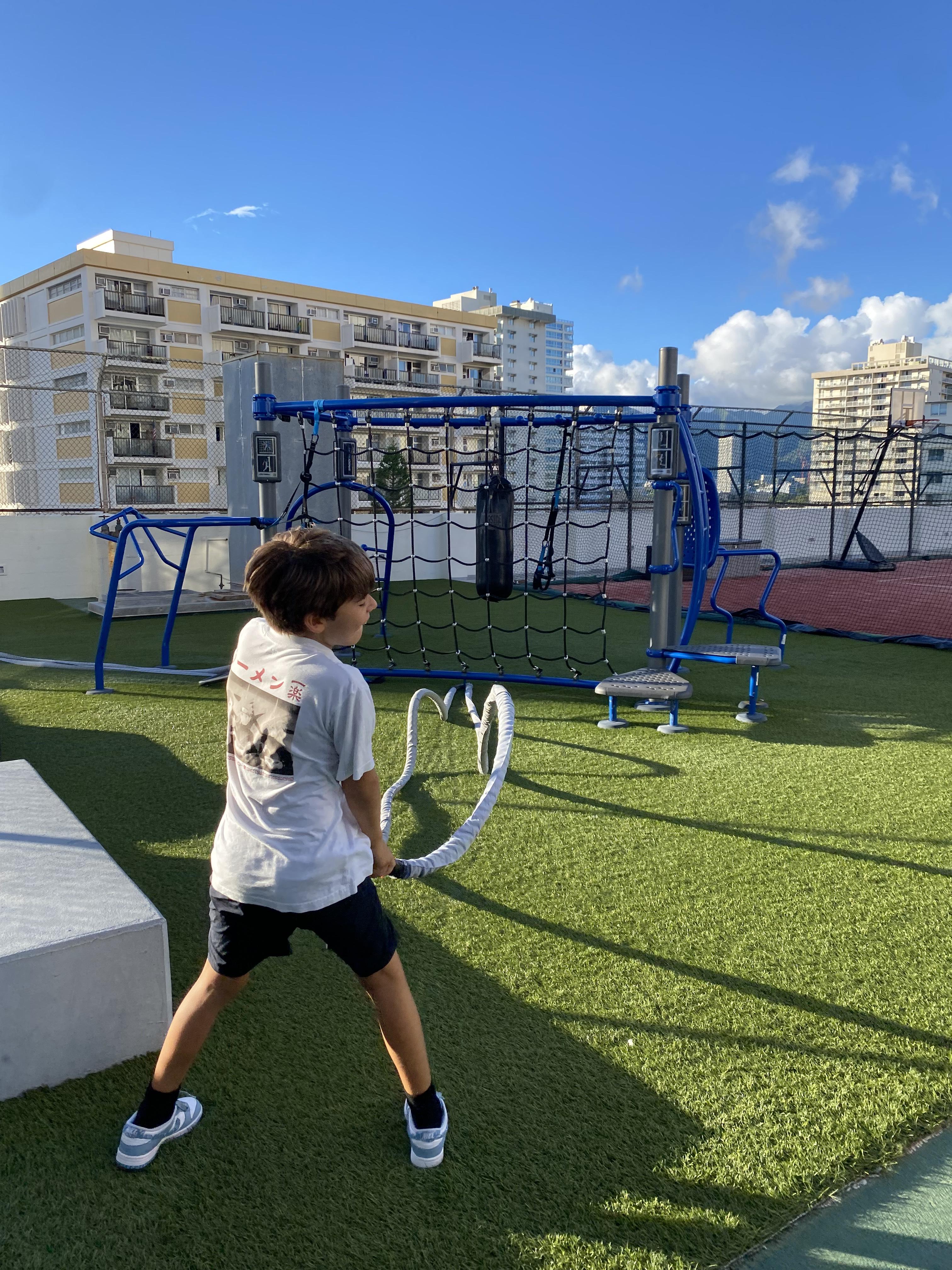 X tries the rooftop gym